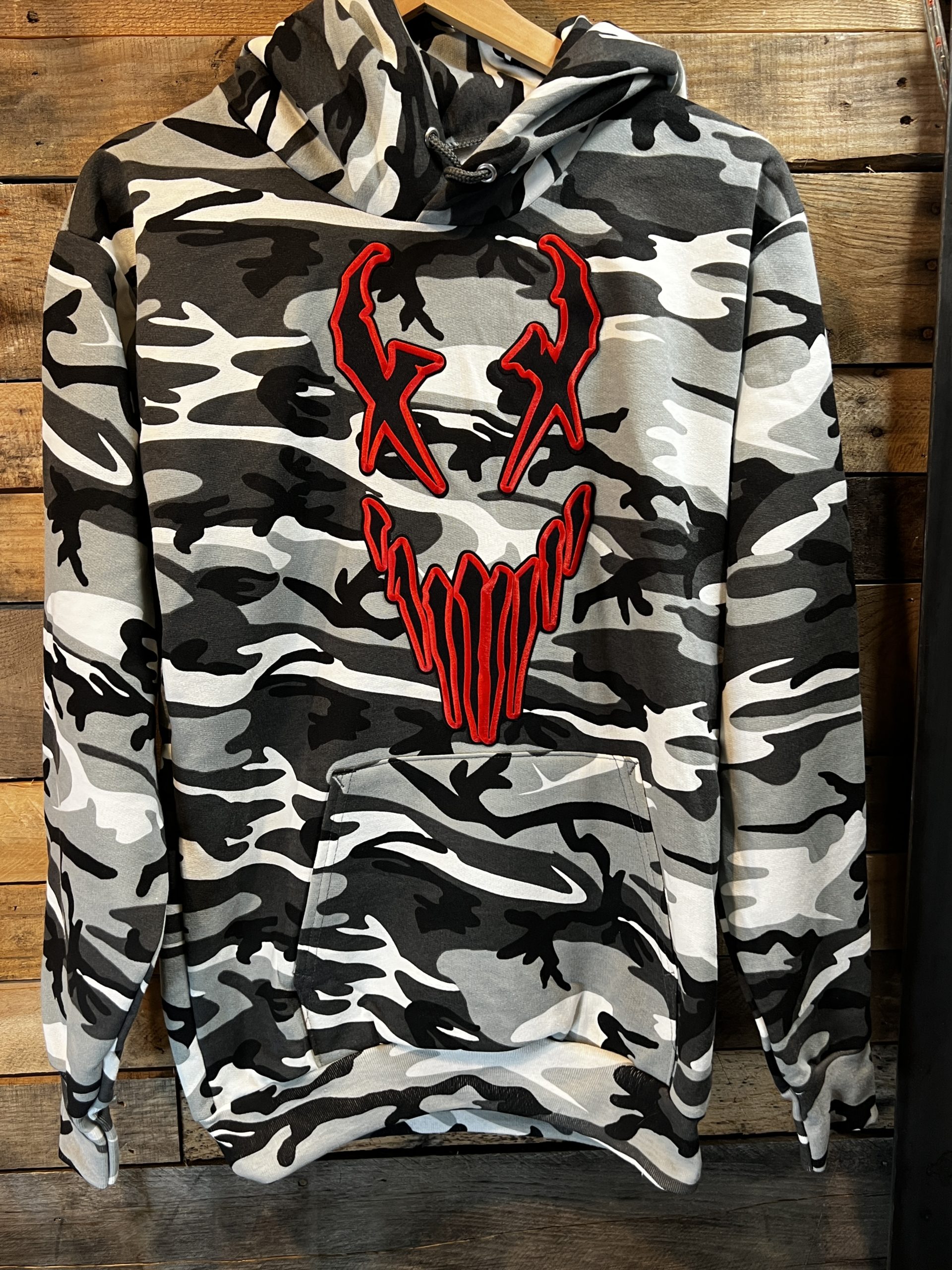 / Urban Camo Pullover hoodie- red X-face